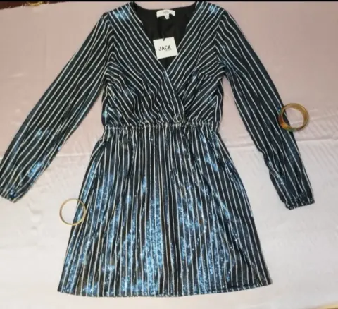 💖 Precioso vestido de lentejuelas. Tiene un precioso escote cruzado en la parte de arriba, se ve divino.