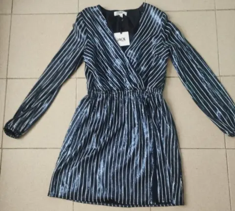 Tiene un precioso escote cruzado en la parte de arriba, se ve divino.