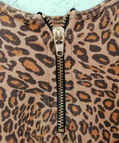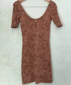 Vestido stretch de animal print de leopardo, adaptable al cuerpo, cuello redondo, con mangas y cierre en la espalda. Sin detalles, esta en buen estado. Talla Mediana