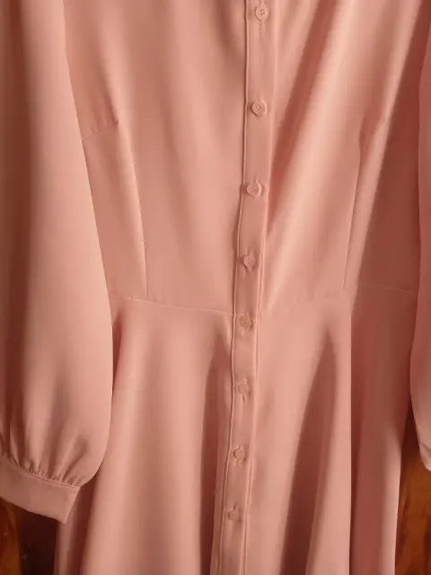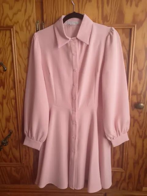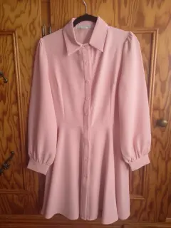 Que lindo. Bonito vestido color palo de rosa, manga larga, sencillo pero elegante, nuevo sin etiqueta