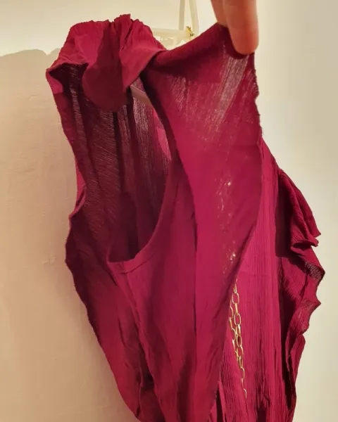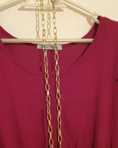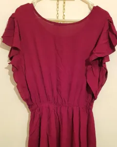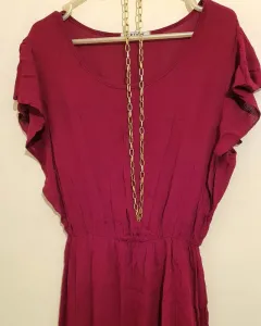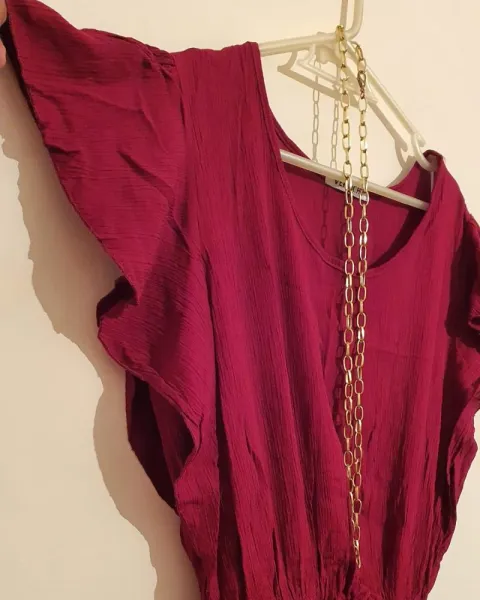 LINDISIMO VESTIDO ROJO QUEMADO/TELA FRESCA LIGERAMENTE PLISADA/OLANES EN MANGAS CORTAS HASTA CINTURA/CINTURA CEÑIDA CON RESORTE/COMODO,FRESCO,LIGERO/INCLUYE FONDO/TALLA: 34/CADENA DE REGALO USALA COMO COLLAR O CINTURON/57cm anchoX 91 largo (de hombro a falda)