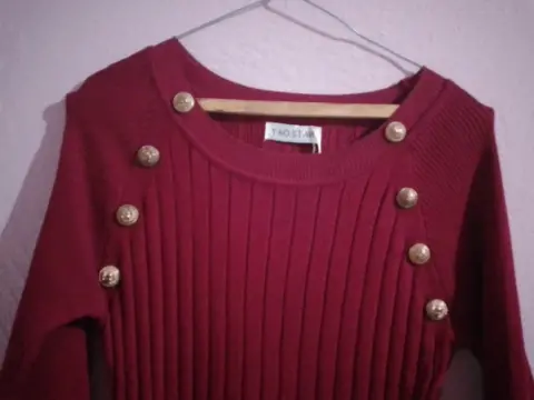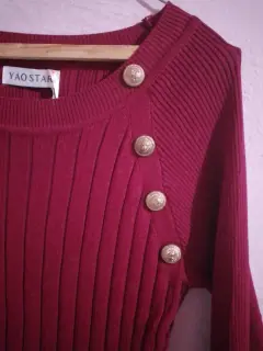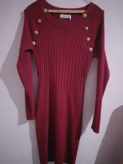 Rojo. Hermoso vestido rojo de mangas largas se amolda hermoso al cuerpoTalla: 28 a 32