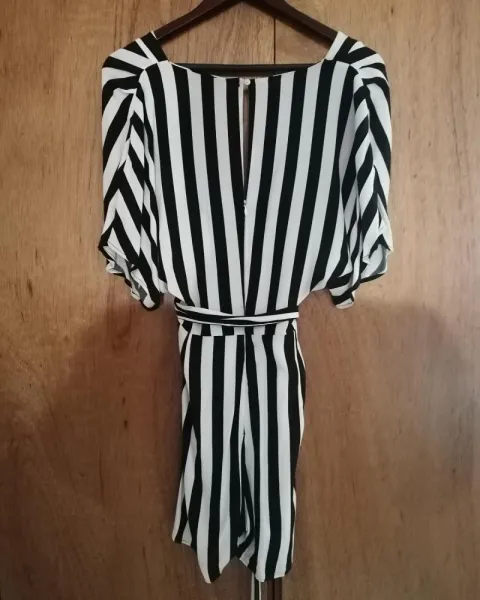 Romper de rayas, súper halagador por el corte y estampado. Tiene short abajo de la falda. Sólo lo usé una vez, lo vendo porque ya no me queda. Está como nuevo. Te va a encantar 😊