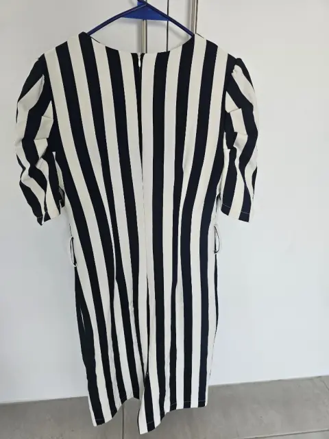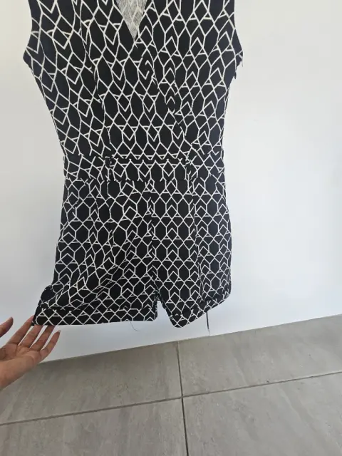 Set jumpsuit y vestido. Ambos son talla chica, es un jumpsuit blanco con negro, orma muy padre y el vestido negro es amplia de abajo y tiene pinzas, lo que hace que se amolde micho mejor a tu cuerpo