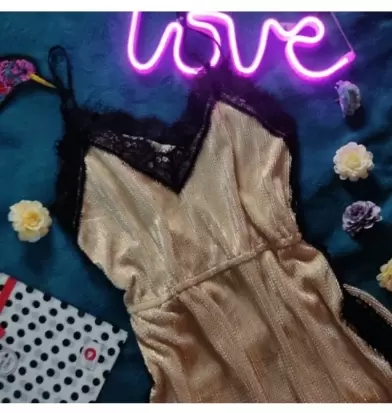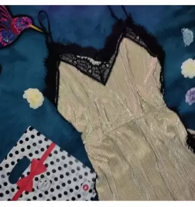 Sexy Vestido dorado con negro. Hermoso vestido dorado con negro de tirantes,resorte en cintura, tela fresca, largo hasta abajo de la rodilla, queda a talla chica o mediana, 100 por ciento Poliester.Envío de lunes a sábado.