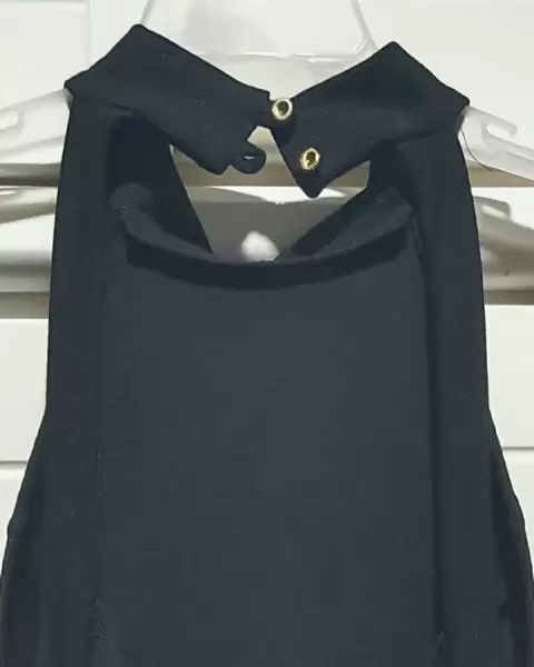 Vestido negro corto, talla m, escotado de la parte de attas y en la espalda tiene una cruz y se abrocha al cuello