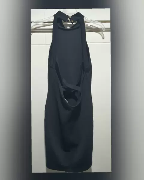 Talla M vestido negro corto. Vestido negro corto, talla m, escotado de la parte de attas y en la espalda tiene una cruz y se abrocha al cuello