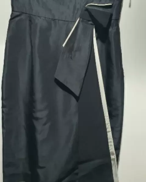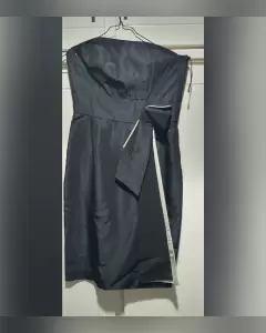 Vwstido zara color negro, se amarra al cuello , con un moño enfrete negro con blanco. Llega a la rodilla