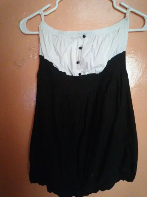 Vendo vestido blanco y negro. Vestido straple corto con resorte ,recto en buenas condiciones no tiene detalles