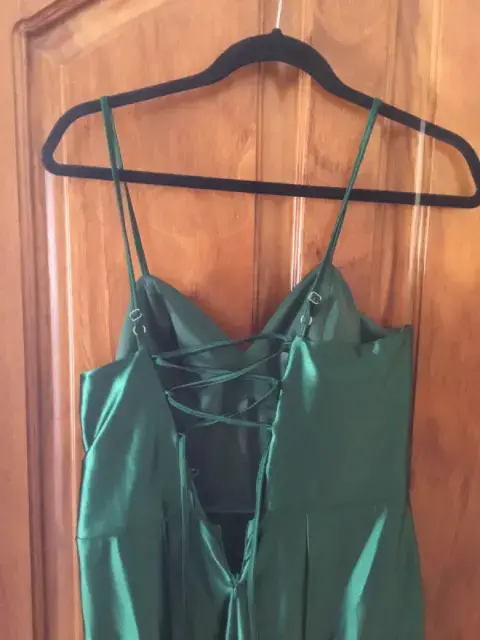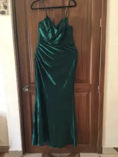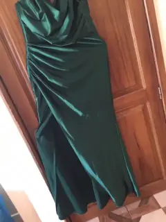Verde esmeralda vestido. Un vestido largo de fiesta con abertura de un lado de la pierna.