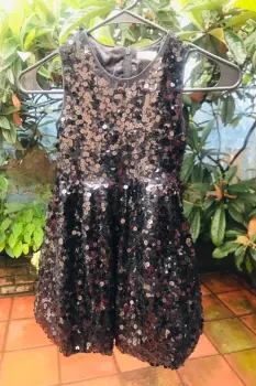Vestidito de niña lentejuelas. Hermoso Vestido para niña talla 5/6 negro de lentejuelas de la marca Place 89.