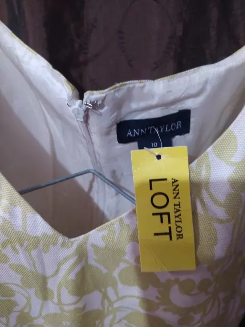 Vestido 10. Vestido talla 10 en color beige con flores verdes de la marca Ann Taylor