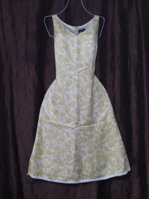 Vestido talla 10 en color beige con flores verdes de la marca Ann Taylor