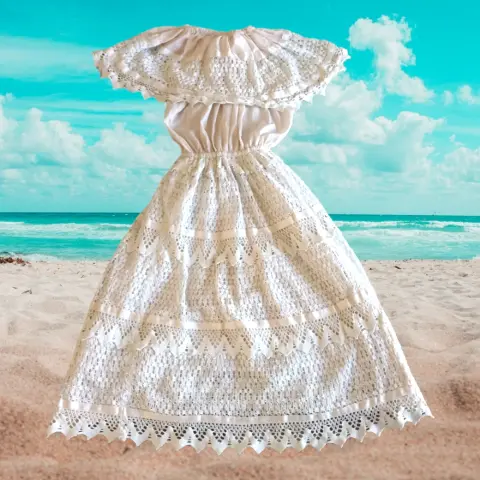 Vestido 100% artesanal. Para ese paseo a Tepoz, la playa o solo para verte hermosa con este vestido hecho 100% mano pues es tejido a gancho por manos yucatecas.