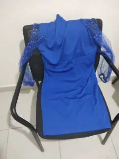 Vestido. Vestido azul rey talla L tela spandex mangas transparentes con brillos llega arriba de la rodilla