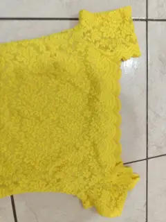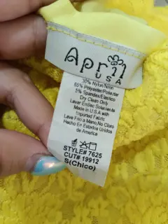 Talla S.Amarillo puesto una sola vez.de encajeEs pegado llega hasta la rodilla.