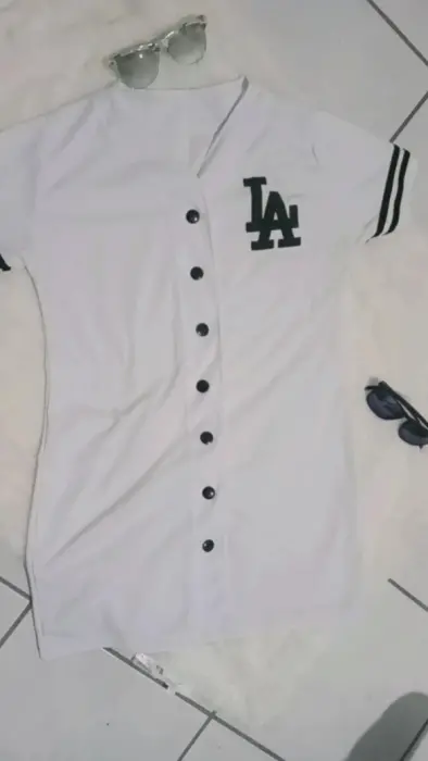 Vestido color blanco, con franjas negras, te llega arriba de la rodilla, no cuenta con ningún detalle y solo tiene una puesta