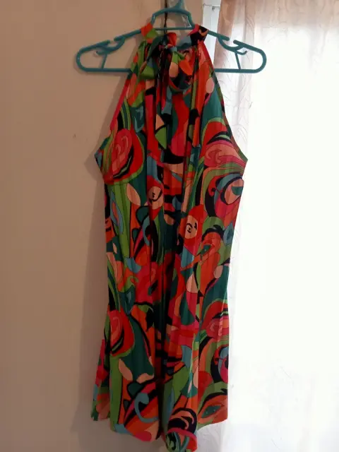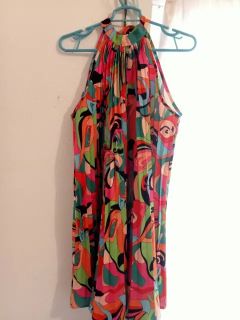 Vestido. Precioso vestido colores neón multicolor cuello halter talla mediana perfecto para fiesta