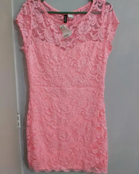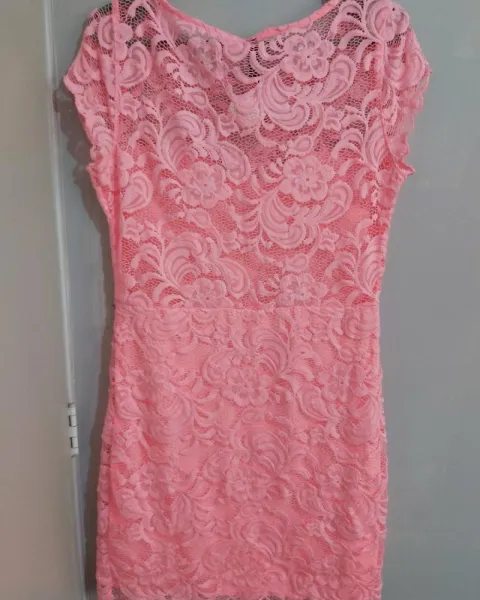 Vestido. Vestido con detalles de encaje transparente en la espalda, corto arriba de la rodilla