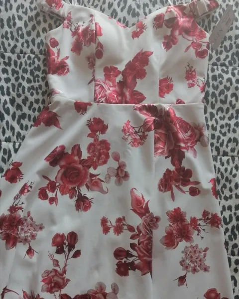 Vestido blanco con rosas rojas, nuevo y con etiqueta,.