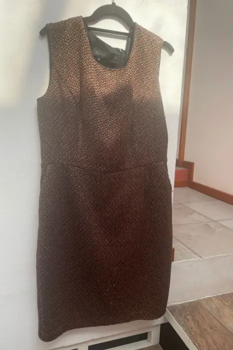 Vestido. Vestido a la rodilla, tweed café, altura a la rodilla, marca Julio, excelentes condiciones.