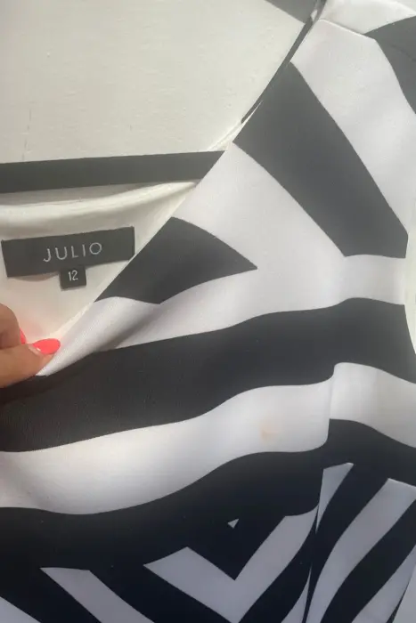Vestido. Es un vestido a la rodilla, marca Julio, talla 10, tiene un detalle de mancha pequeña se percibe en las fotos, es una mancha pequeña de maquillaje.El vestido solo tiene dos puestas.