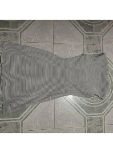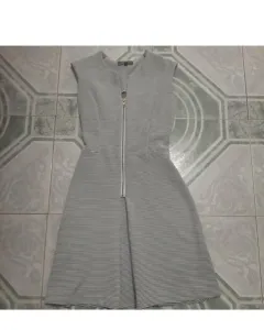 Vestido de rayas negro con blanco, corte amplio de cadera y ajustado en cintura, talla 28, solo tiene una postura.