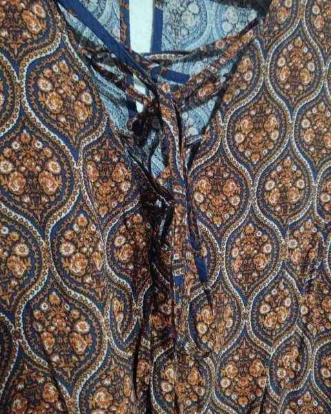 Vestido. Vestido casual de manga larga, talla L, arriba de la rodilla, trae detalle de escote y cinta en cintura para amarrar