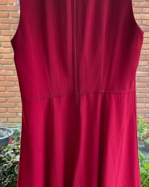 Vestido. Vestido rojo sin mangas en forma de A, llega arriba de la rodilla