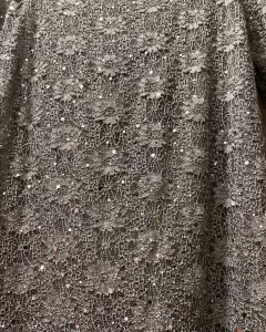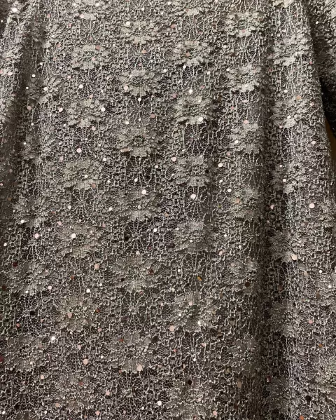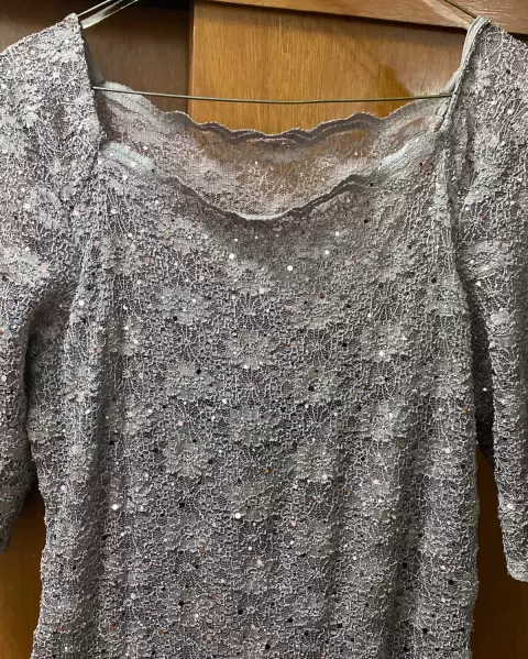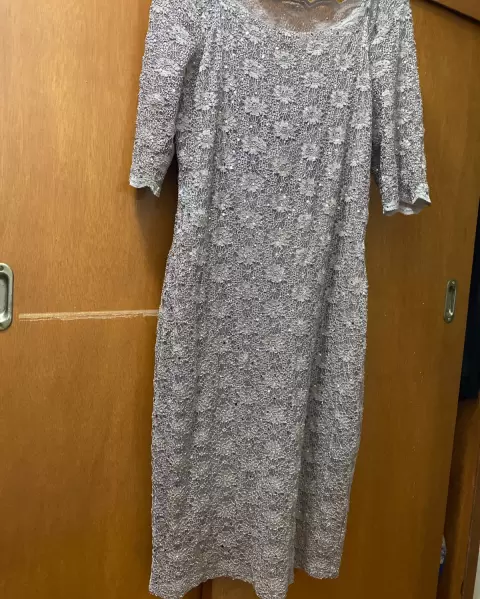 Vestido. Hermoso vestido de noche o de cóctel de encaje con finas lentejuelas, manga 3/4 con forro/ fondo para que no transparente.