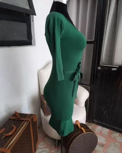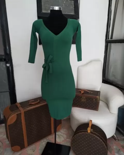 Vestido 3/4 verde. Vestido de Lycra, ajusta a tu figura resaltando tus curvas, es para una talla CH-M las mangas y el largo son 3/4