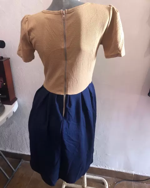 Vestido casual coló beige con azul marinoEs talla S, viene un poco más grande, esta muy bonito para un evento casual