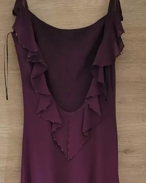 Vestido. Vestido de coctail fresco y ligero sin escote al frente con escote hasta la espalda media, pedreria en perfecto estado