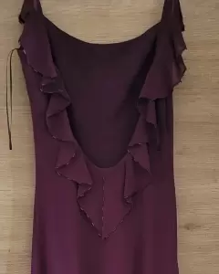 Vestido de coctail fresco y ligero sin escote al frente con escote hasta la espalda media, pedreria en perfecto estado