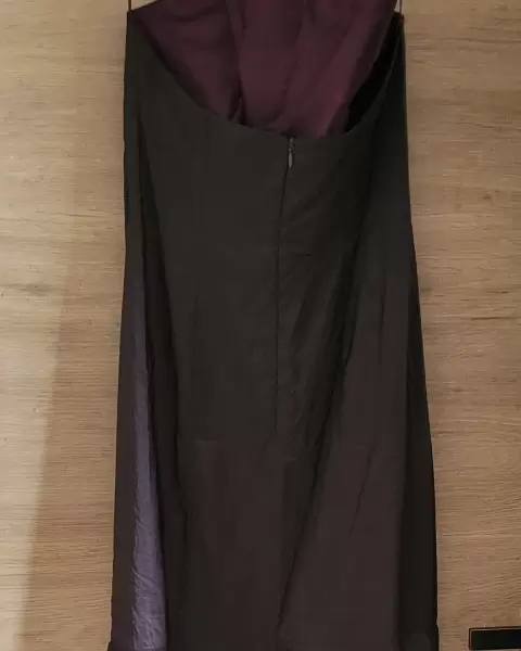 Vestido. Vestido largo halter corte sirena color guinda tornasol