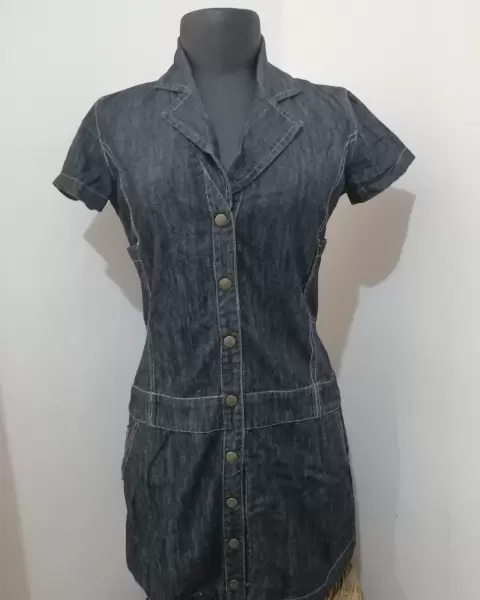 Vestido. Vestido de mezclilla, con botones al frente, con bolsos a un costado.