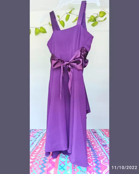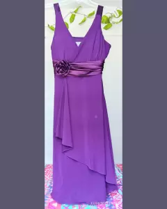Vestido de tirantes gruesos, con detalle de rosa delantera y listón posterior, con forro.