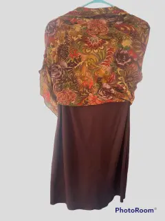Vestido. Hermoso vestido Strech, con aplicaciones en chaquira y canutillos en flores y hojitas, listo para estrenar