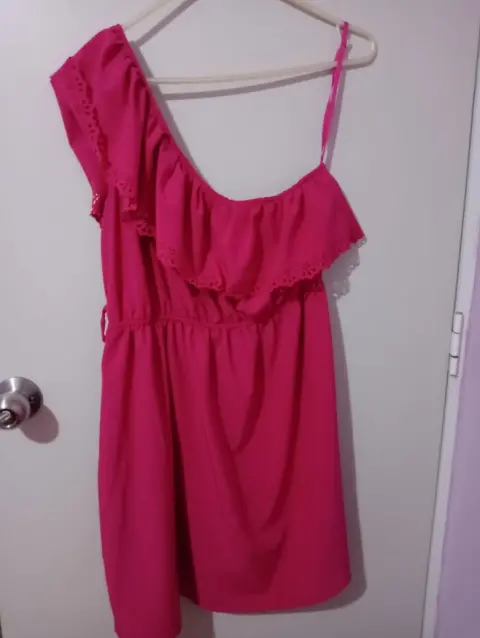Vestido. Vestido,rosa Fiusha,con flores en la parte de arriba, para cualquier ocasión Sólo es de una manga