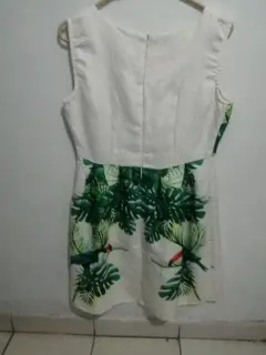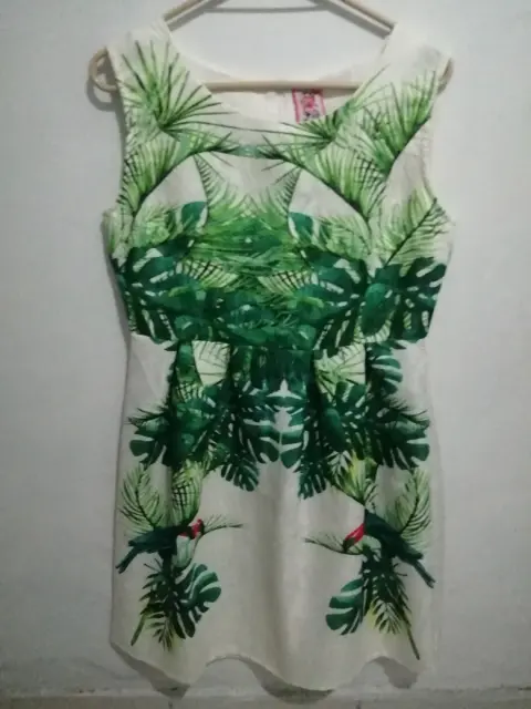 Vestido. Vestido balnco con estampado hojas verdes, sin manga, largo de 100cms talla extrangrande, busto 100ms contura 90cm