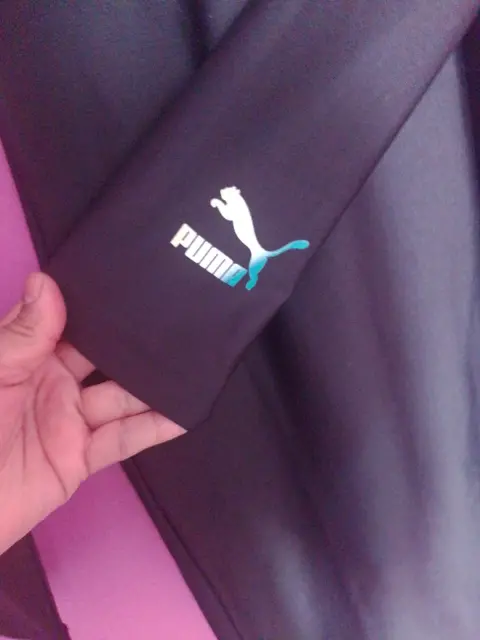 Vestido de licra corto en color negro,manga larga,en la espalda está descubierto,en una manga tiene el estampado de PUMA,es corto