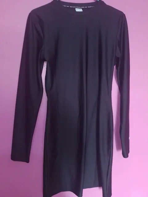 Vestido. Vestido de licra corto en color negro,manga larga,en la espalda está descubierto,en una manga tiene el estampado de PUMA,es corto