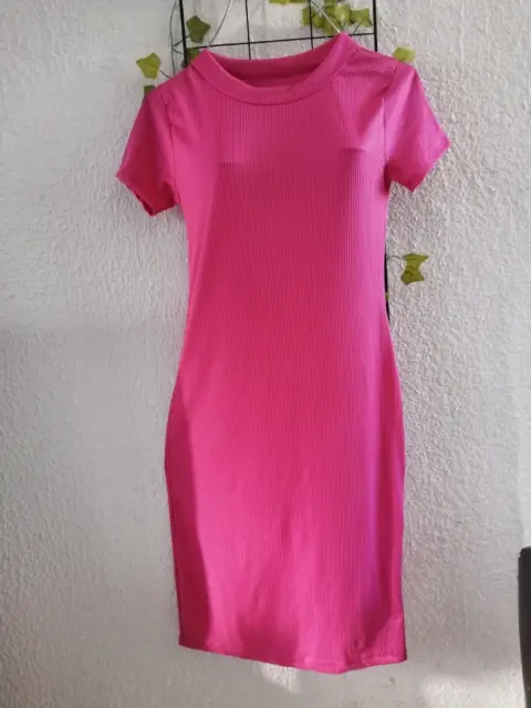 Vestido color rosa Barbie, entallado de licra, amolda super bonito al cuerpo, cuello redondo