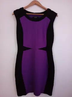 Vestido. Hermoso vestido morado con negro, con forro, marca Julio, talla 6.Es una prenda de algodón que se adapta al tipo de cuerpo.