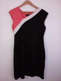 Hermoso vestido negro con franjas rosa y blanco, con forro, marca Julio, talla 6.Es una prenda que se ajusta al cuerpo.