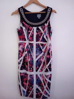 Hermoso vestido colorido con forro, marca Rabbit Designs, talla 8.Es una prenda que se adapta al cuerpo.