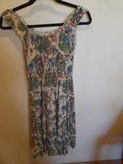 Vestido. Vestido largo con flores y figuras de elefantes multicolor delgadito muy bonito