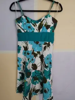 Vestido de tirantes talla G, blanco y verde, cinturon verde, arriba de la rodilla, en excelentes condiciones.