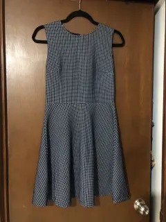 Vestido. Color azul , estampado cuadros Talla chicoSin mangas Cuello redondo Corto, arriba de las rodillas
