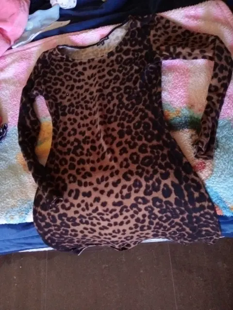 Este vestido se usó una vez, es mediano, tiene abertura enfrente, enseña piel y es como para andar sencilla